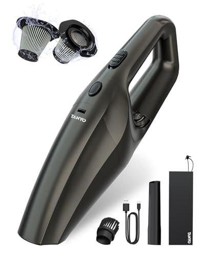 TANYO Aspirateur à Main, 12000Pa Aspirateur Voiture Puissant sans Fil Equipé d'un Moteur amélioré, Mini Aspirateur de Table vec Filtre Lavable HEPA pour Canapé Maison Voiture Bureau Tableau