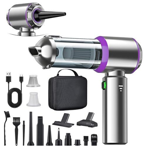 Aspirateur à main 2 en 1 sans fil, 25000 PA, aspirateur à main puissant, 3 vitesses, 220000 tr/min, souffleur de poussière électrique, vaporisateur d'air comprimé pour voiture, cuisine, PC, canapé