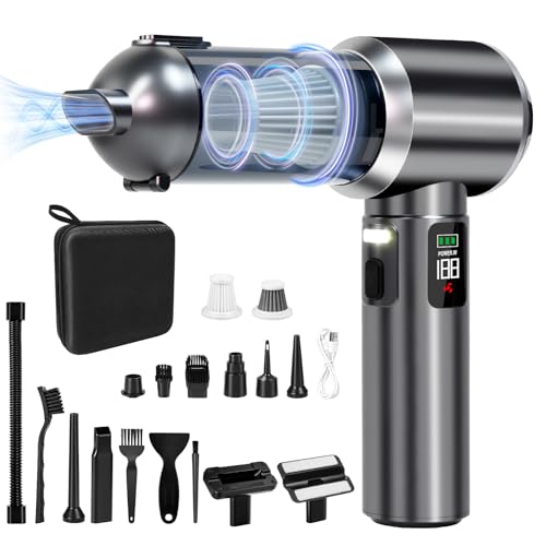 KLYNGTSK Aspirateur à Main Sans Fil, Aspirateur à Main 4-en-1 Sans Fil avec Écran LCD, Aspirateur Auto Sans Fil Vainqueur du Test, Souffleur Électrique à Air Comprimé pour Voiture, Cuisine, Canapé