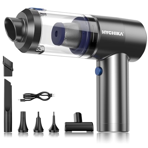 HYCHIKA Aspirateur à Main sans Fil - 19 kPa Mini aspirateur de Voiture - 2600mAh - Débit d'air - Moteur sans balais - Vidage de la poussière à Un Bouton - Filtre Lavable pour Voiture, canapé, Poils