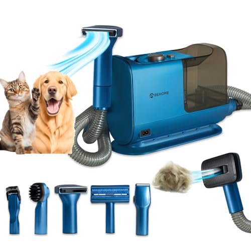 BEHOME Aspirateur Poil de Chien et Chats à poils longs et courts avec brosse 6-en-1 Set de Toilettage et aspirateur pour Animaux, aspirateur, rasoir et accessoires de nettoyage, ultrasilencieux