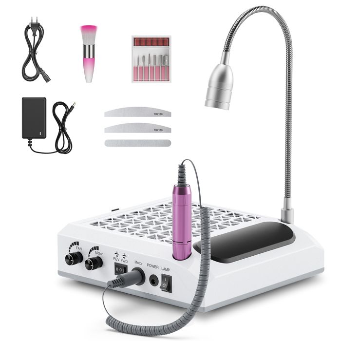4 en 1 Ponceuse à ongles électrique 30000 tr/min aspirateur puissant 80 W lumière LED rotative 6 W silencieuse avec 3 limes