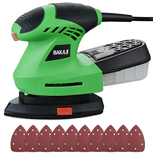 Bakaji Ponceuse souris orbitale de précision Puissance 200 W 12 000 tr/min Aspirateur intégré et bac de collecte de poussière Base ruban rotatif 360 degrés avec 10 feuilles abrasives incluses