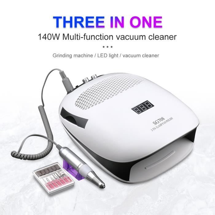 Ponceuse manucureMachine de manucure complète de 140 W perceuse à ongles avec 30000 RPM lampe de 80W et aspirateur - Type 3IN1