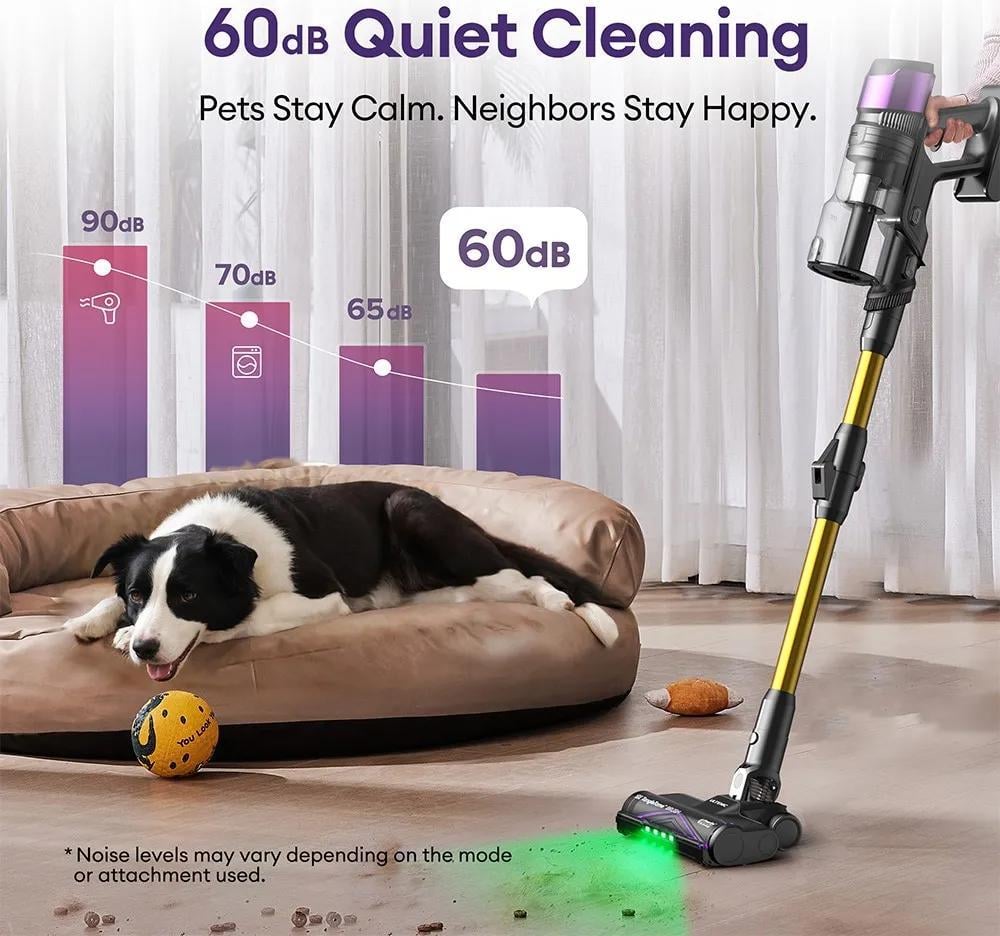 Aspirateur balai,65000pa/ Moteur brushless haute performance/90000RPM,Tuyau flexible ultra-pratique,aspirateur sans fil 5-en-1,autonomie 60min,aspirateur balai sans fil,Kit spécial animaux : brosse anti-poils + tuyau flexible 618E-650w Idéal pour animaux