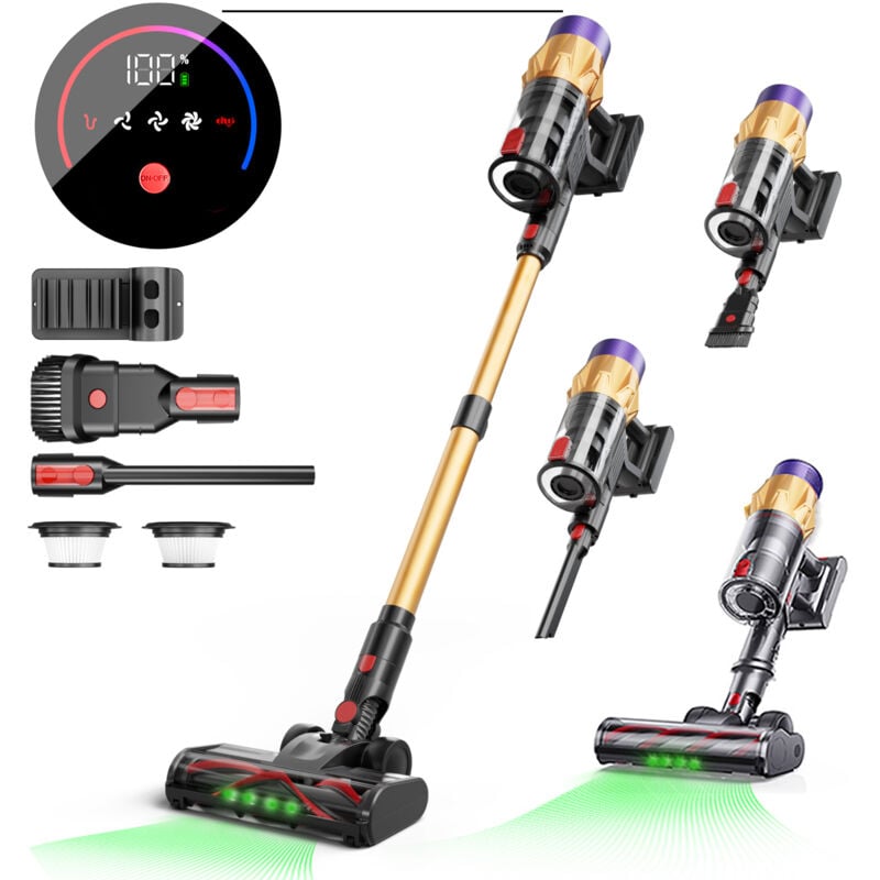 Aspirateur balai sans fil puissant 2en1 rechargeable 22.2V avec brosse anti-emmêlement et Écran LED -Vert