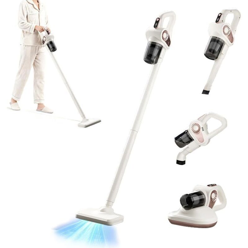 4 in 1 Aspirateur sans Fil, 45000tr/min Aspirateur Balai Puissant Aspiration Puissante avec Lampe UV 253nm pour Les Poils d'animaux/Tapis/Sols Durs