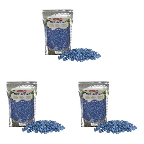Amtra Fluo Gravel Décoratif pour aquarium, gravier en céramique pour fond d'eau douce et salée, sans poussière, bleu 350 g (Lot de 3)