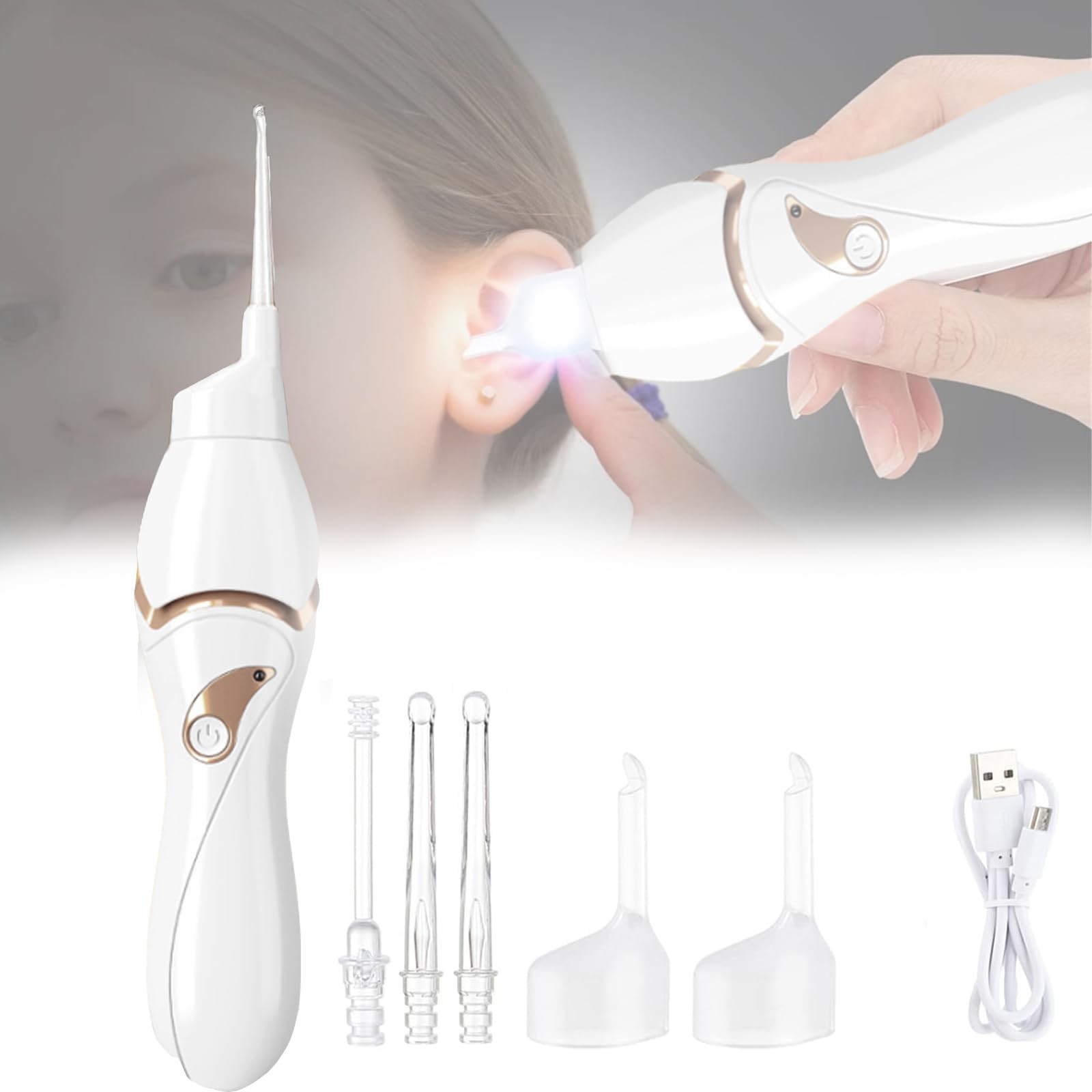 Nettoyeur dOreille - segolike - Aspirateur de Cérumen - Sans Fil - 2 Têtes de Remplacement - Compact