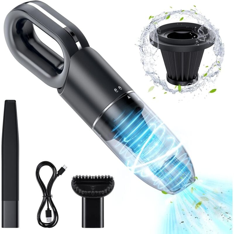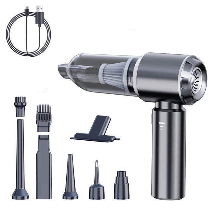 Aspirateur à main noir puissant pour voiture - Rechargeable par USB, compact, silencieux, idéal pour le nettoyage de la maison et de la voiture
