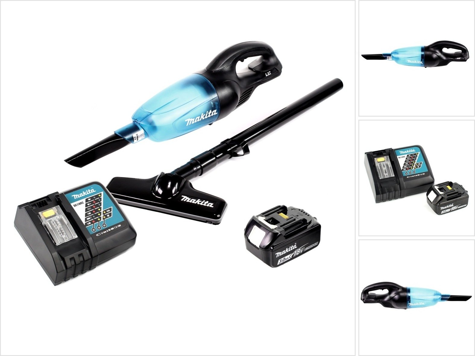 Makita DCL 180 B 18V Li-Ion Aspirateur compact sans fil Noir + 1x Batterie BL 1830 3,0 Ah + Chargeur rapide DC 18 RC