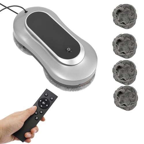 Nettoyeur de vitres électrique automatique avec double jet d'eau et 10 chiffons de nettoyage, aspirateur intelligent pour l'intérieur et l'extérieur des fenêtres de grande hauteur (gris argenté)