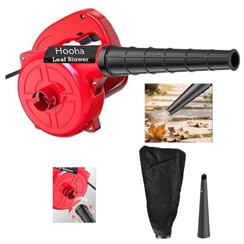 Hooha Souffleur à feuilles avec 2 accessoires et sac à poussière 500 W Puissant souffleur 0,9 kg Aspirateur à main Vitesse de soufflage 200 km/h Souffleur de feuilles pour aspirer et broyer les