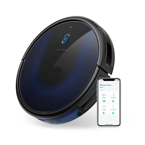 Robot aspirateur et Laveur 2 en 1 avec réservoir d'eau et bac de récupération, Aspiration 2000 Pa, Puissant Robot Domestique, Tapis Dur (Bleu)