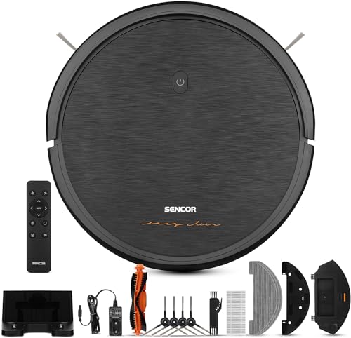 Sencor Aspirateur Robot Laveur SRV 3150OR - Navigation Intelligente, Ultra-Mince, Puissant 2600mAh pour Nettoyage Humide/Sèche, Contrôle Facile, Idéal pour Poils d'Animaux et Allergènes