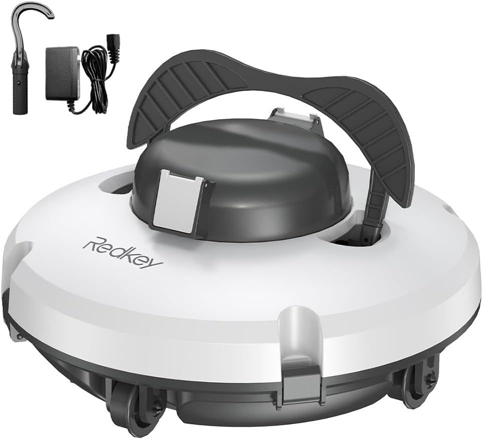 Redkey S100 Robot Piscine Sans Fil, 130 Min de Nettoyage Puissant, Pente de 18°, Deux Moteurs Puissants et Brosses, Automatique de Stationnement, Aspirateur Piscine pour Piscines Hors Sol jusqu'à 100¿