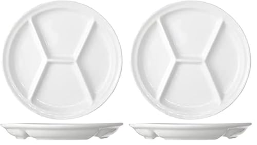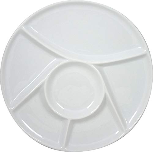 Cosy & Trendy HJ3151 Assiette à fondue, 4 compartiments, Porcelaine, diamètre 26 cm, Blanc (Lot de 2)