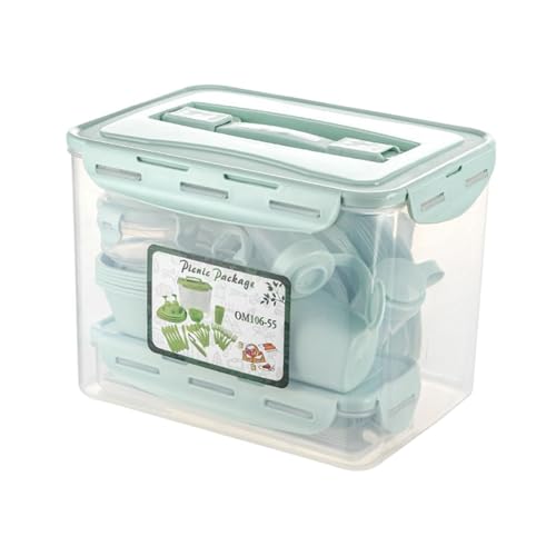 perfk Ensemble de Vaisselle réutilisable pour 6 Personnes, ustensiles de fête, dortoir, Pique-Nique, Assiette, Bol, Fourchette, cuillère, sel, Poivre, Vert