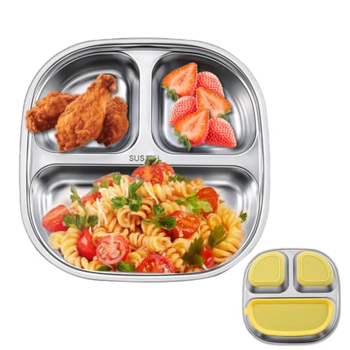 CEWROM Assiette Bébé Anti-Dérapante - Plateau En Acier Inoxydable 316 Alimentaire, 3 Compartiments avec Ventouse, Lavable au Lave-Vaisselle et Micro-Ondes - Idée Cadeau Écologique pour Bébé (20cm)