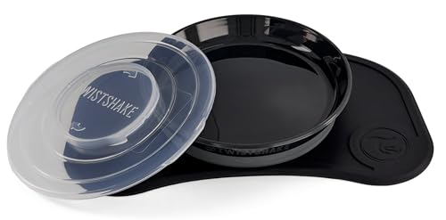 Twistshake Ensemble de Vaisselle pour Bébé Mini | Assiette Ventouse + Set de Table (31x17) | Sevrage sans BPA | 3 Parties | 6 Mois+ | Noir
