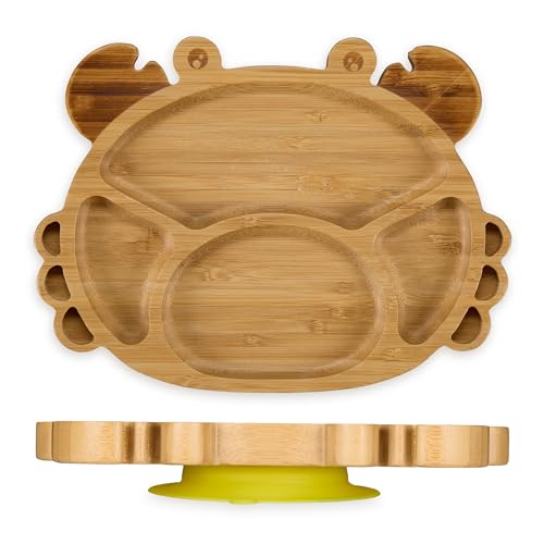 Relaxdays Assiette à Ventouse, Bambou, Crabe, antidérapant, sans BPA, Repas de bébé, Divers Compartiments, Nature