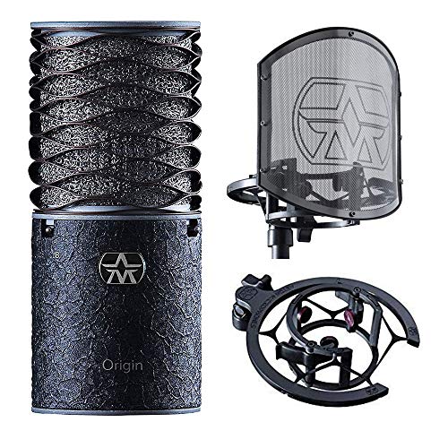 Aston Microphones Origin Black Bundle Microphone Cardioïde Ideal Performance à Condensateur et Large Membrane - Inclut le Filtre Anti-Pop et le Kit de Montage Antichoc Swiftshielld