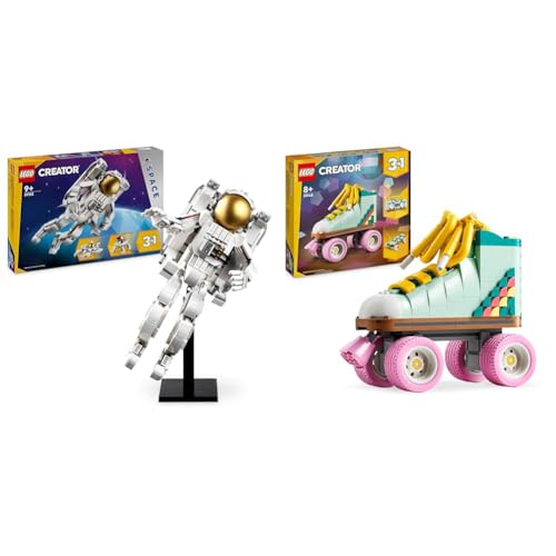 LEGO Creator 3-en-1 L’Astronaute dans l’Espace, Jouet de Construction avec Chien & Creator Les Patins à roulettes Rétro, Jouet pour Filles et Garçons avec Mini-Skateboard et Boombox, Décoration