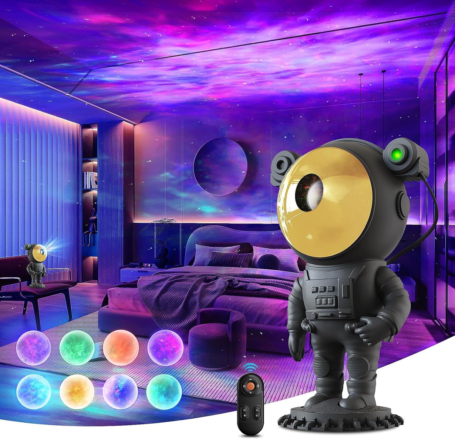 TOCVEOE Astronaute Projecteur Ciel Etoile Galaxie Veilleuse Enfant Chambre Galaxy 8 Nébuleuse 2 Étoile 2 Minuteries Luminosité et Vitesse Réglable Télécommande Intelligente Rotative à 360° pour Fête
