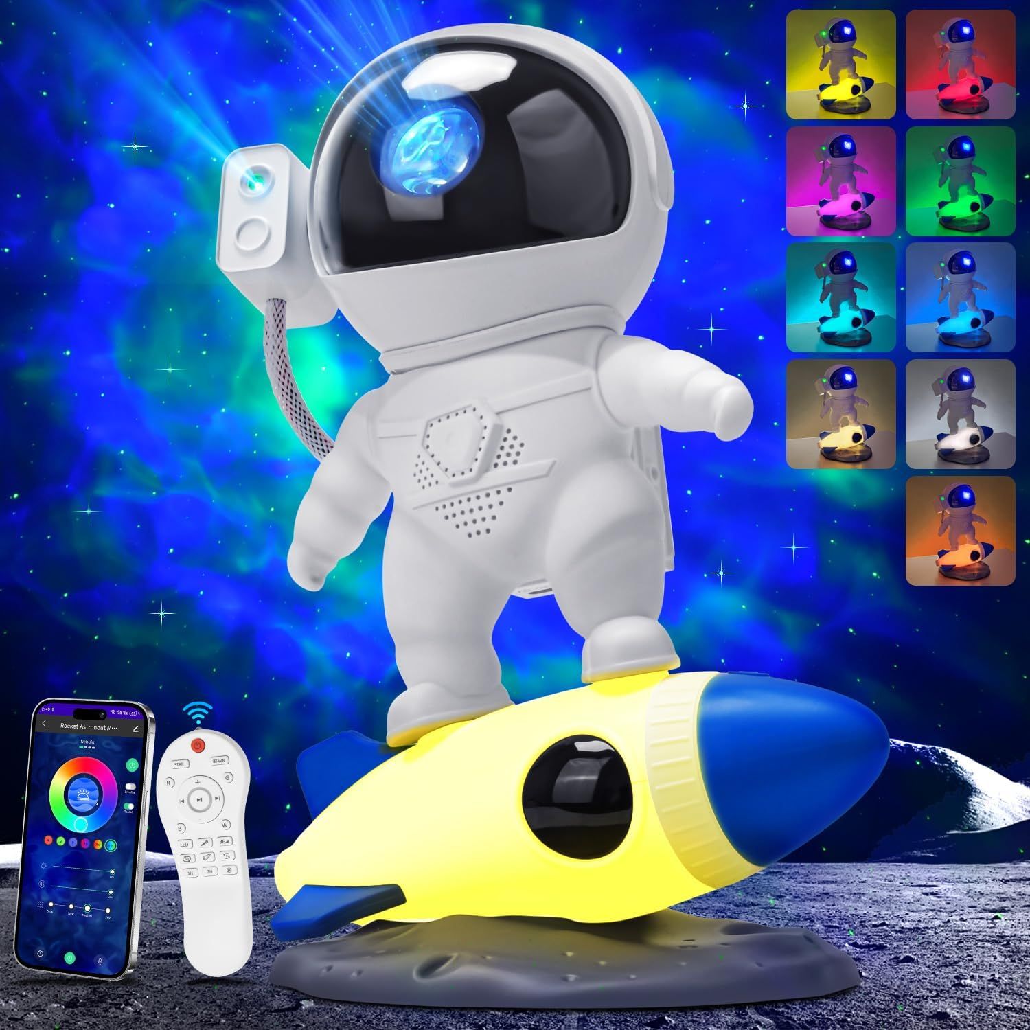 Fulluky Astronaute Projecteur ciel étoilé avec veilleuse, Galaxy Light avec 12 lentilles, projecteur d'astronaute pour enfants et adultes, projecteur de ciel étoilé (fusée)