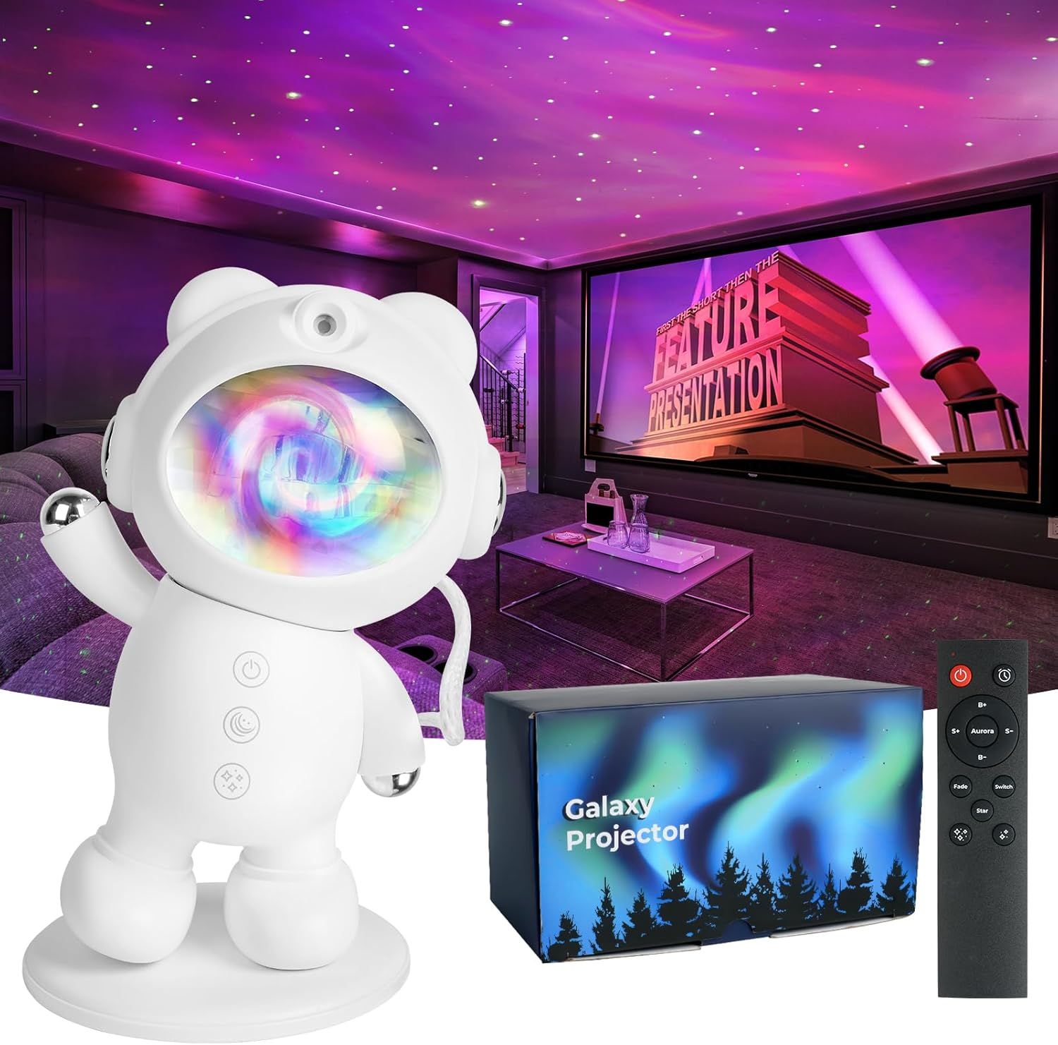Focenat Astronaute Projecteur Galaxy, Rotation à 360°Projecteur ciel etoile d'astronaute avec Nébuleuse, Étoile, Forme de lapin Ciel étoilé Veilleuse, Cadeaux Pour Enfants et Adultes