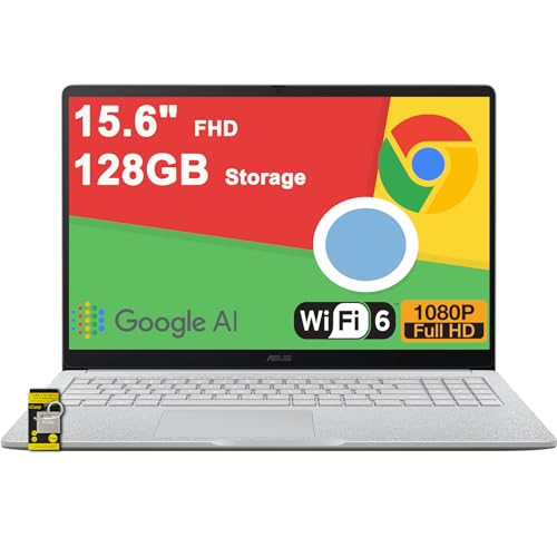 ASUS Chromebook CX15 Ordinateur portable léger pour étudiant 15,6" FHD anti-reflet Intel Celeron N4500 4 Go de RAM 128 Go de stockage Typc-C Batterie longue durée Caméra de prix ICP Hub Google AI