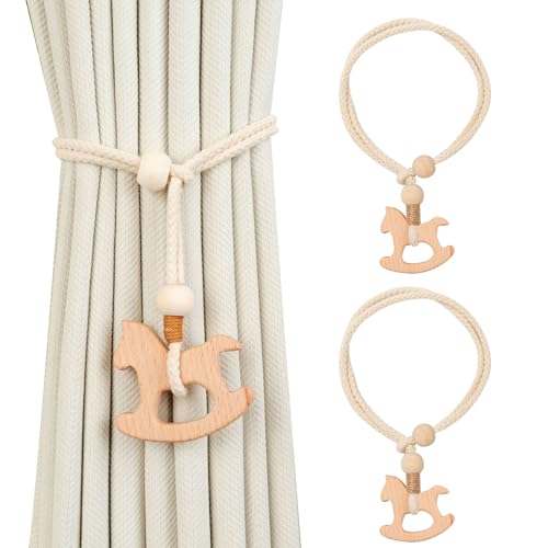 SBOJI Embrasses de Rideaux,Attache Rideau Rideau à Tringle magnétique en Bois, 2 pièces, Anneau Rond, Boucle d'embrasse, Reliure, Dos de draperie, Accessoires de Salle