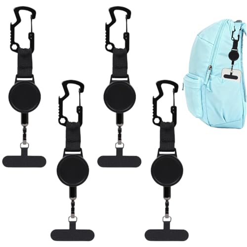 Derwrtup 4 Pièces Attache Antivol pour Téléphone Portable, 60cm Cordons De Téléphone Rétractables avec Boucle d'embrayage Antivol, pour Randonnée, Cyclisme, Escalade, Noir
