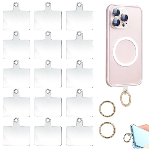 KATIMI 15 Pièces Cordon Sans Perçage, Patch pour Lanière Telephone Portable Réglable, PVC Attache Telephone avec 2 Bagues Alliage, Dragonne