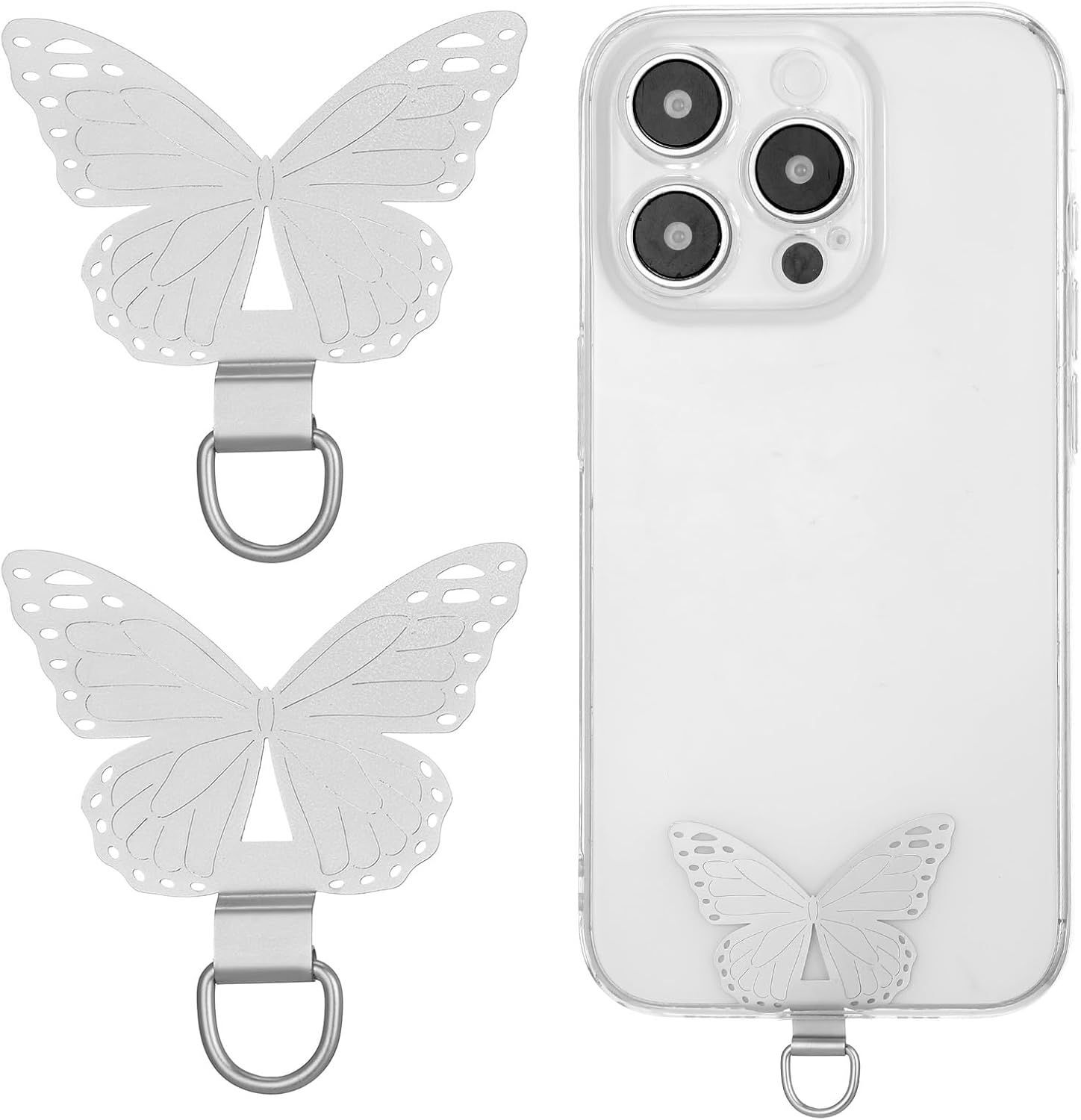 2pcs Supports Chaîne Téléphone Portable, Papillon Coussinets Universels Patchs Lanière Attache Telephone Chaîne Support Acier Inoxydable Attache Cordon Telephone Universels Plupart Smartphones