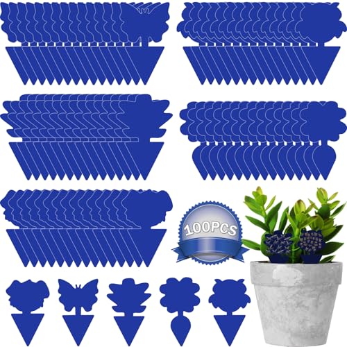 100 Pièges Anti Moucherons Interieur, Attrape Moucheron Plantes, Pièges à Insectes Bleu Collants pour intérieur et extérieur