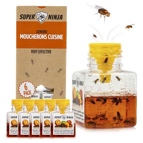 Super Ninja Pièges Anti Moucherons d'Intérieur Cuisine – Lot de 6 Attrape Moucheron Intérieur pour Maison, 3 Semaines d’Action, Sûr pour Enfants et Animaux, Non Adapté aux Moucherons de Terreau