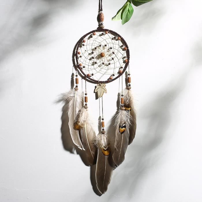 IMMIGOO Indien Attrape Rêve avec Arbre de Vie Original Capteur de Rêves Décoration Murale Chambre Voiture Rétroviseur pour Enfant Fille Garçon - Marron
