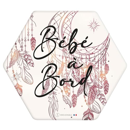 IRREVERSIBLE BIJOUX - Sticker Bébé à Bord Attrape Rêve Repositionnable Intérieur ou Extérieur - Résistant UV et Lavage - Sécurité Voiture Enfant - Cadeau Futurs Parents - 13x15cm - Fabriqué en France