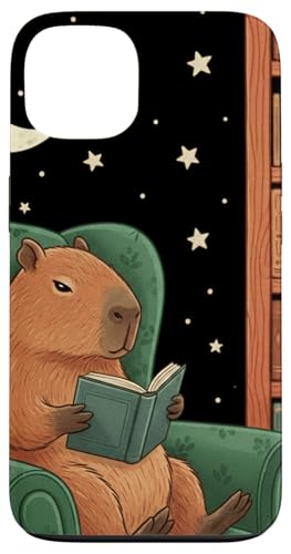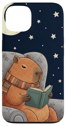 Capybara Mignon lisant sous Le Ciel de bibliothèque au Clair de Lune Coque pour iPhone 13