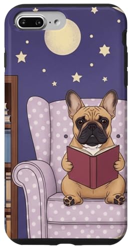 Bibliothèque au Clair de Lune Bouledogue français Lecture Coque pour iPhone 7 Plus/8 Plus