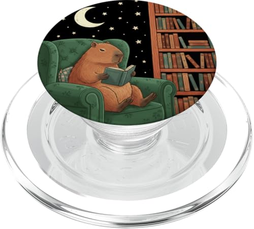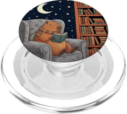 Capybara Mignon lisant sous Le Ciel de bibliothèque au Clair de Lune PopSockets PopGrip pour MagSafe