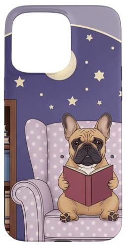 Bibliothèque au Clair de Lune Bouledogue français Lecture Coque pour iPhone 15 Pro Max
