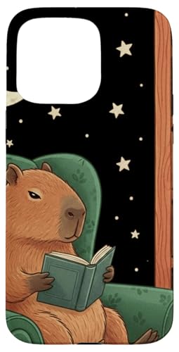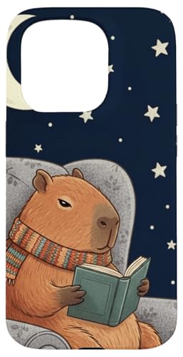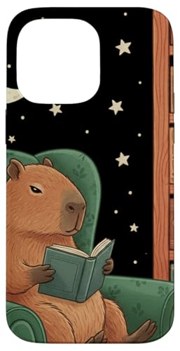 Capybara Mignon lisant sous Le Ciel de bibliothèque au Clair de Lune Coque pour iPhone 15 Pro