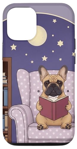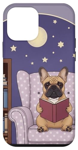 Bibliothèque au Clair de Lune Bouledogue français Lecture Coque pour iPhone 12/12 Pro