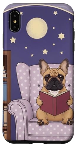 Bibliothèque au Clair de Lune Bouledogue français Lecture Coque pour iPhone XS Max
