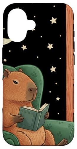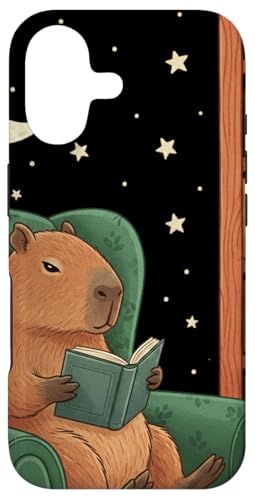 Capybara au Clair de Lune lisant dans la Nuit de la bibliothèque Coque pour iPhone 16 Plus