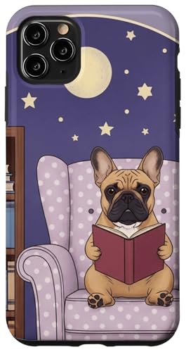 Bibliothèque au Clair de Lune Bouledogue français Lecture Coque pour iPhone 11 Pro Max