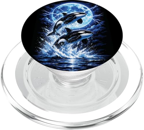 Baleines sautant au Clair de Lune PopSockets PopGrip pour MagSafe