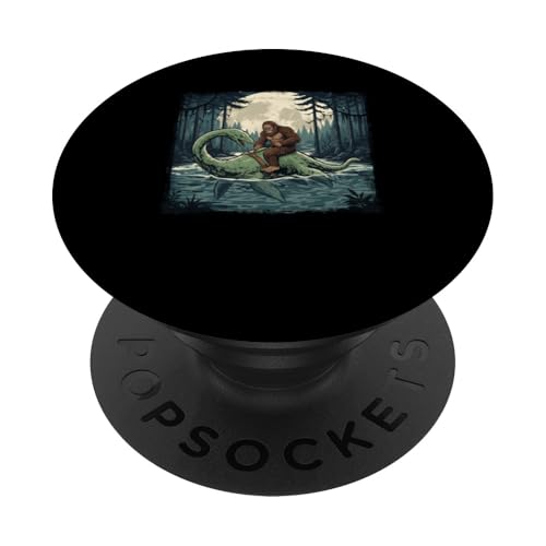 Bigfoot chevauchant Le Monstre du Loch Ness au Clair de Lune sur Le lac Cryptid PopSockets PopGrip Adhésif